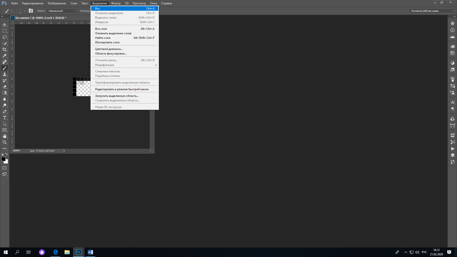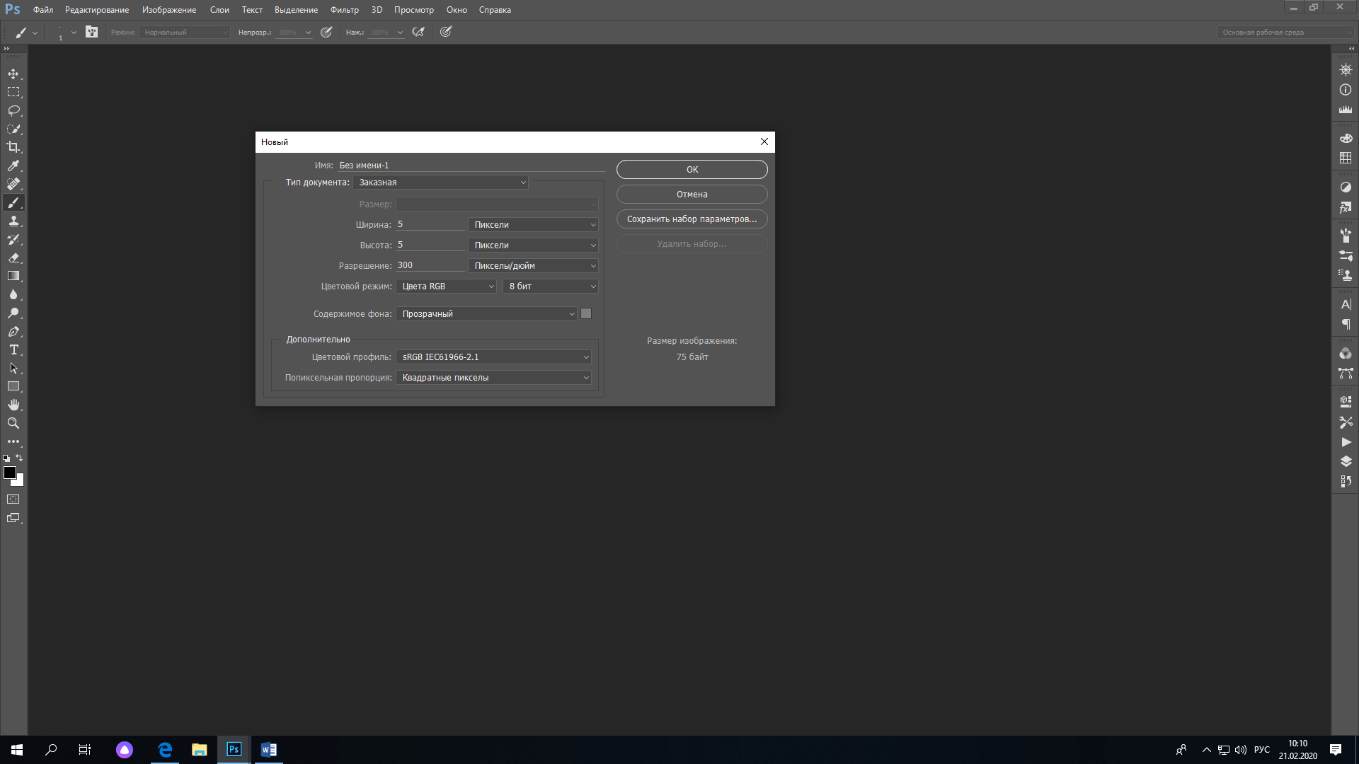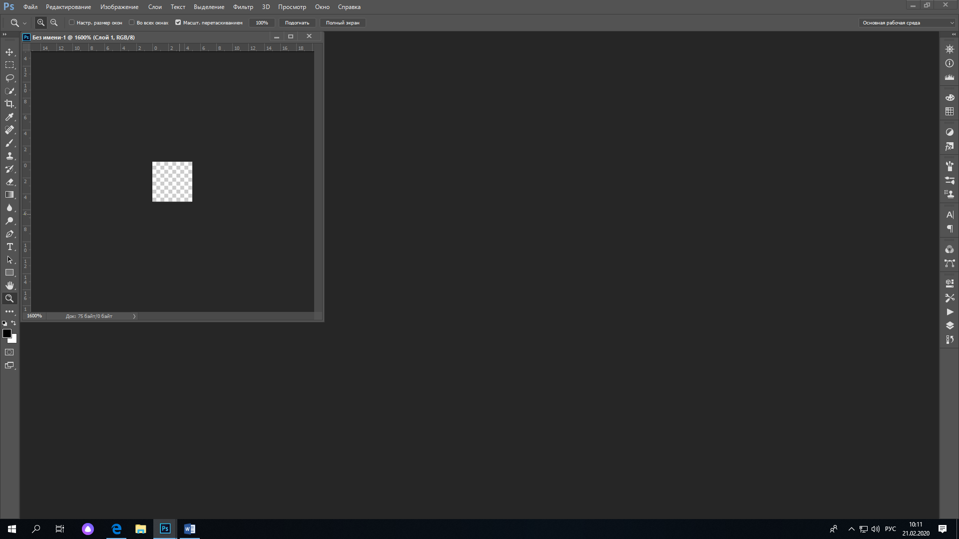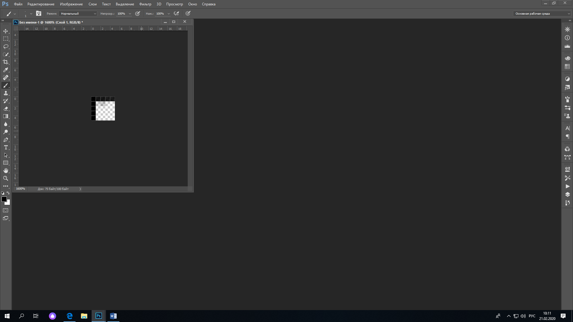5. Создаем новое изображение размером 5х5 пикселей, фон-прозрачный. Увеличьте его до 1600%