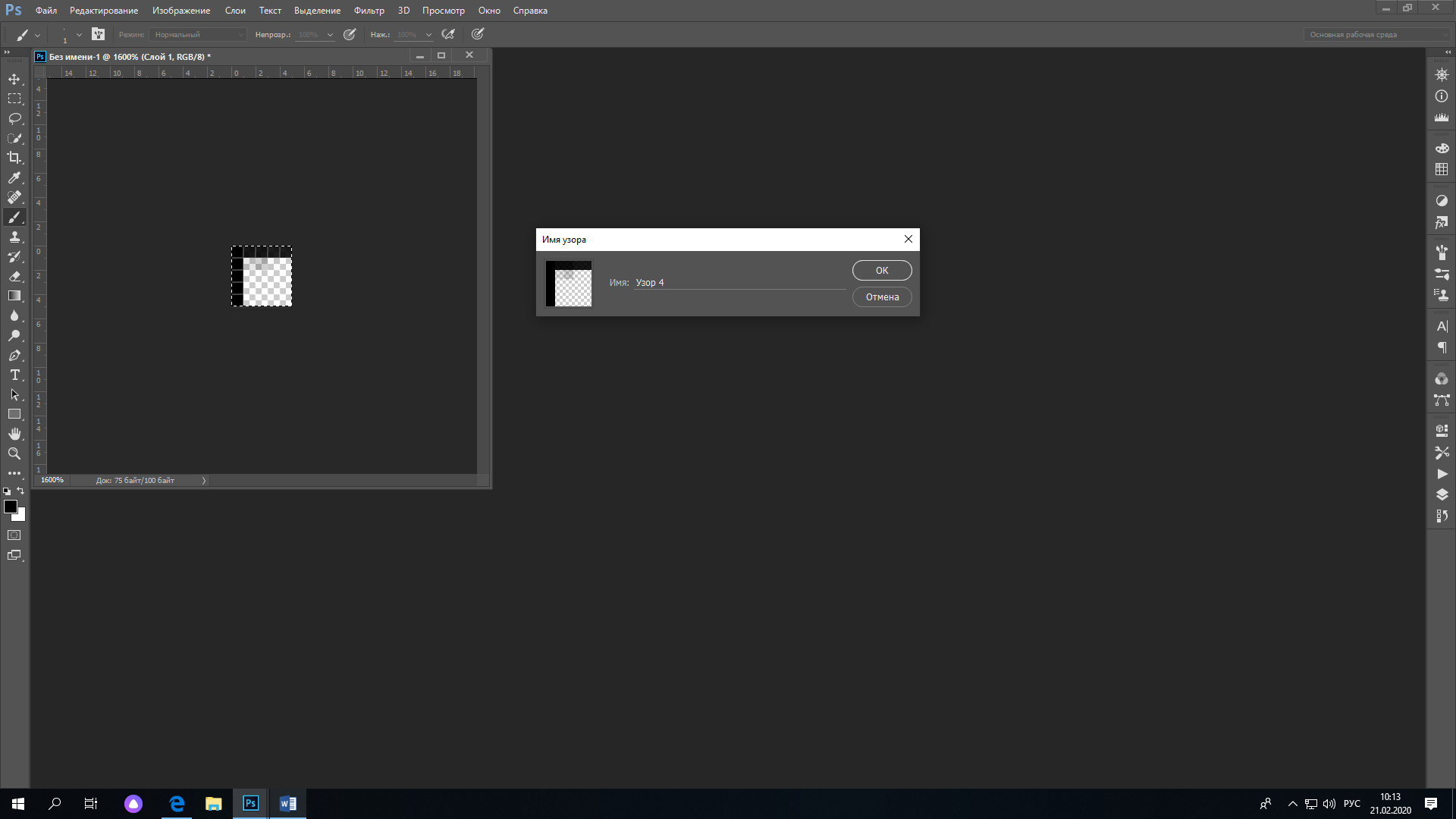 7. Выделяем все. Дальше выбираем РЕДАКТИРОВАНИЕ > ОПРЕДЕЛИТЬ УЗОР. Появится вот такое окошко, нажимаем ОК