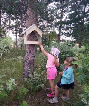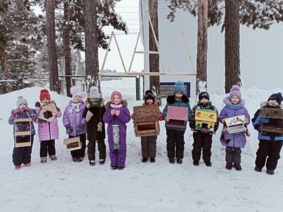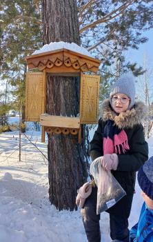 В осенне-зимний период обустроили птичье кафе «Чик-чирик» привлекли для изготовления кормушек родителей воспитанников. Цель познакомить детей с разновидностью птиц, научить отличать зимующих и перелетных птиц, их значение в природе, воспитывать трудолюбие, доброе отношение к птицам. Подкормка птиц несложное, но педагогически целесообразное и высокоэффективное в воспитательном отношении дело. Задача взрослых - воспитывать интерес у детей к друзьям нашим меньшим - птицам, желание узнавать новые факты их жизни, заботиться о них, радоваться от сознания того, что делясь крохами, можно спасти птиц зимой от гибели. Дать детям элементарные знания о том, чем кормить птиц зимой.