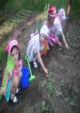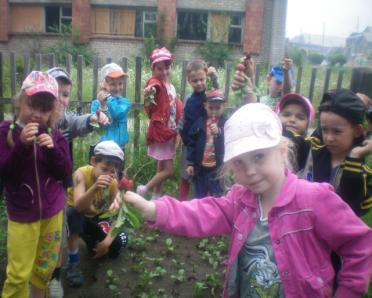 В начале лета разработали и посадили все группы детского сада по грядке овощей (редис- 2 младшая, лук- средняя, горох- старшая, кабачки –подготовительная группа ), так появилась станция «Во саду ли, в огороде» с целью формировать у детей познавательный интерес к выращиванию овощей, воспитывать трудолюбие.