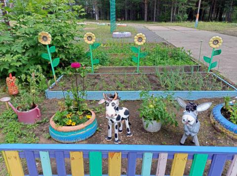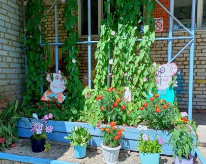 В 2023году в весенне-летний период продолжили работу по благоустройству территории детского сада. Так в мае провели акцию «До свиданья детский сад», где дети совместно с родителями оформили клумбы и высадили цветы, так появилась станция «Цветик семицветик», цель которой формировать познавательный интерес к выращиванию и уходу за садовыми цветами. Воспитывать трудолюбие.
