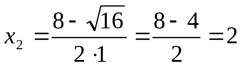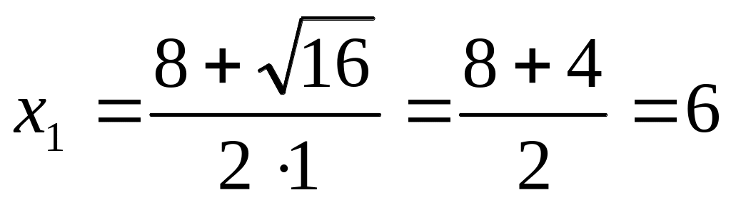 D = (−8)2 − 4 · 1 · 12 = 64 − 48 = 16