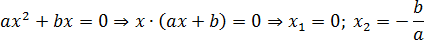 Пусть с =0, тогда получаем ax2 + bx = 0.