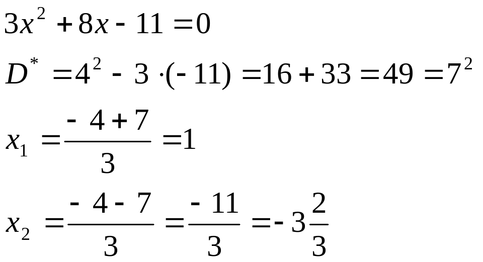 20. Решите уравнения: а) 9x2+24x+16=0; б) 3x2-8x+7=0;