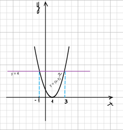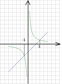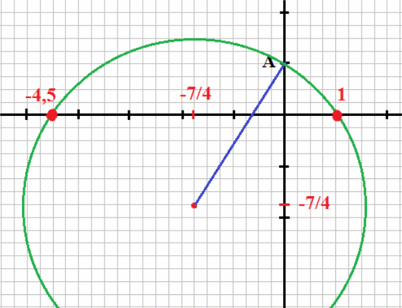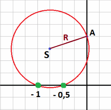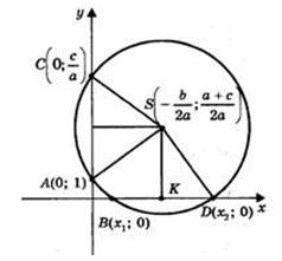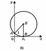 ) и А (0;1) и провести окружность с центром в точке S и радиусом SA. Абсциссы точек пересечения с осью Ох есть корни исходного уравнения.