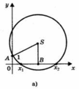 , окружность не имеет общих точек с осьюОх. В этом случае исходное