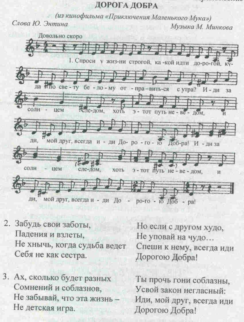 4. Музыкальный материал: “Дорога добра” муз.М.Минков, сл. Ю. Энтин
