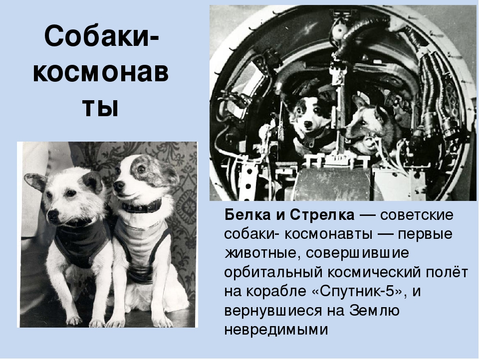 - Кто запомнил, какие животные летали в космос? (собаки Белка и Стрелка)