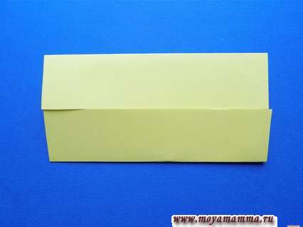 - Далее будем делать боковые стороны. Для этого правый край загнем влево, ориентируясь на расположенную там линию сгиба. | |