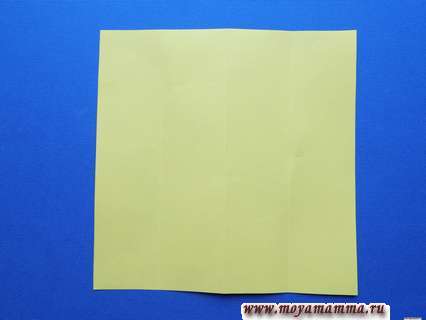 - берём лист квадратной формы и складываем пополам, намечая поперечный сгиб.