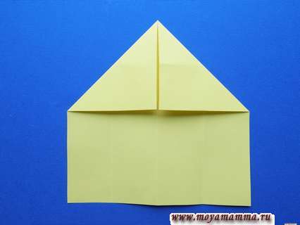 - В верхней части квадрата загибаем уголки к середине. Так мы формируем верх ракеты. |