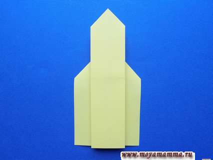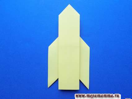 - Затем этот же край отгибаем обратно. Так мы сделали одну сторону ракету. |
