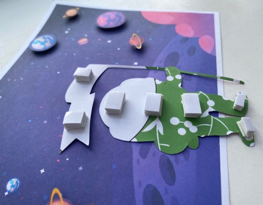 4. Приклеиваем все детали на фоновую часть. 3D-аппликация «На обратной стороне Луны» готова.
