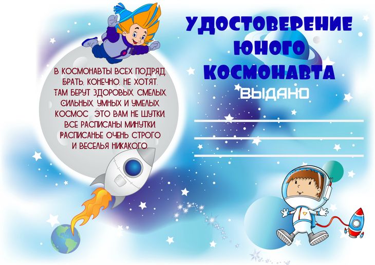 «Удостоверение юного космонавта»