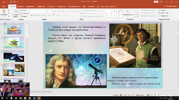 | Древние люди думали, что Земля неподвижна, а Солнце и Луна вокруг нее вращаются. Спустя много лет астроном Николай Коперник доказал, что Земля и другие планеты вращаются вокруг Солнца. Ньютон понял, почему планеты вращаются вокруг Солнца и не падают. Они все летят вокруг Солнца по своему пути. |