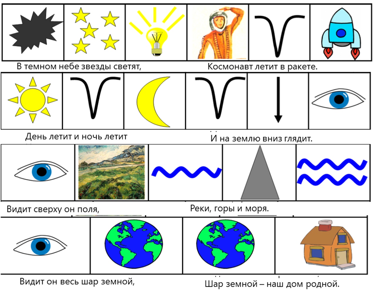 Мнемотаблица «Полёт в космос» (на слайде)