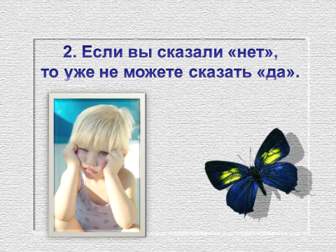 Прежде чем сказать ребёнку «нет», подумайте - насколько это необходимо? Не получится ли так, что вы запретили то, что потом придётся разрешить? Чего в таком случае будет стоить ваше слово, если его с лёгкостью можно забирать обратно? Ровным счётом ничего! Так что если вы можете обойтись без «нет», то это всегда лучше и для ребёнка, и для родителя.