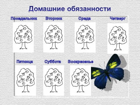 Как быть, если ребенок забывает о своих обязанностях? Нужна система напоминаний, использовать можно самые разные приемы. Ребенок сам выберет такой способ, который его устраивает. Ребенку постарше удобно пользоваться таблицей-календарем, в которой заранее обозначены домашние дела и есть место, чтобы отметить: выполнено - не выполнено. Сделайте большой рисунок дерева с не закрашенными листочками. Выполнив какую-то работу, малыш может закрасить один листочек (начиная с нижних), постепенно все дерево "зазеленеет", а ответственный исполнитель получит какой-нибудь приз.