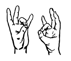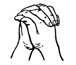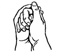 Методика исполнения: подушечки безымянного, мизинца и большого пальцев соединены вместе, а оставшиеся свободно выпрямлены. Выполняется обеими рука одновременно.