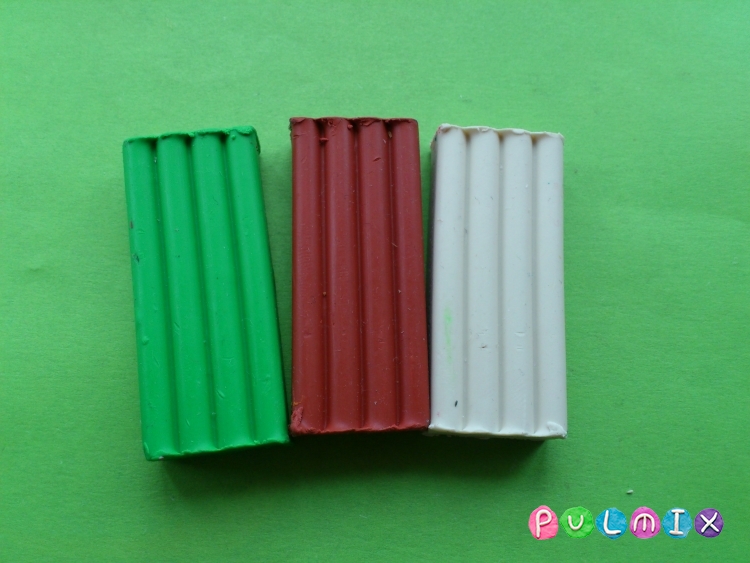 Для работы нам потребуется вам всего 4 бруска пластилина: коричневый, зеленый, черный и белый.