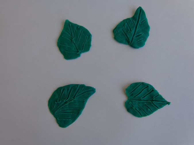 3 этап - из зеленого пластилина делаем листья, которые мы с вами уже учились лепить.