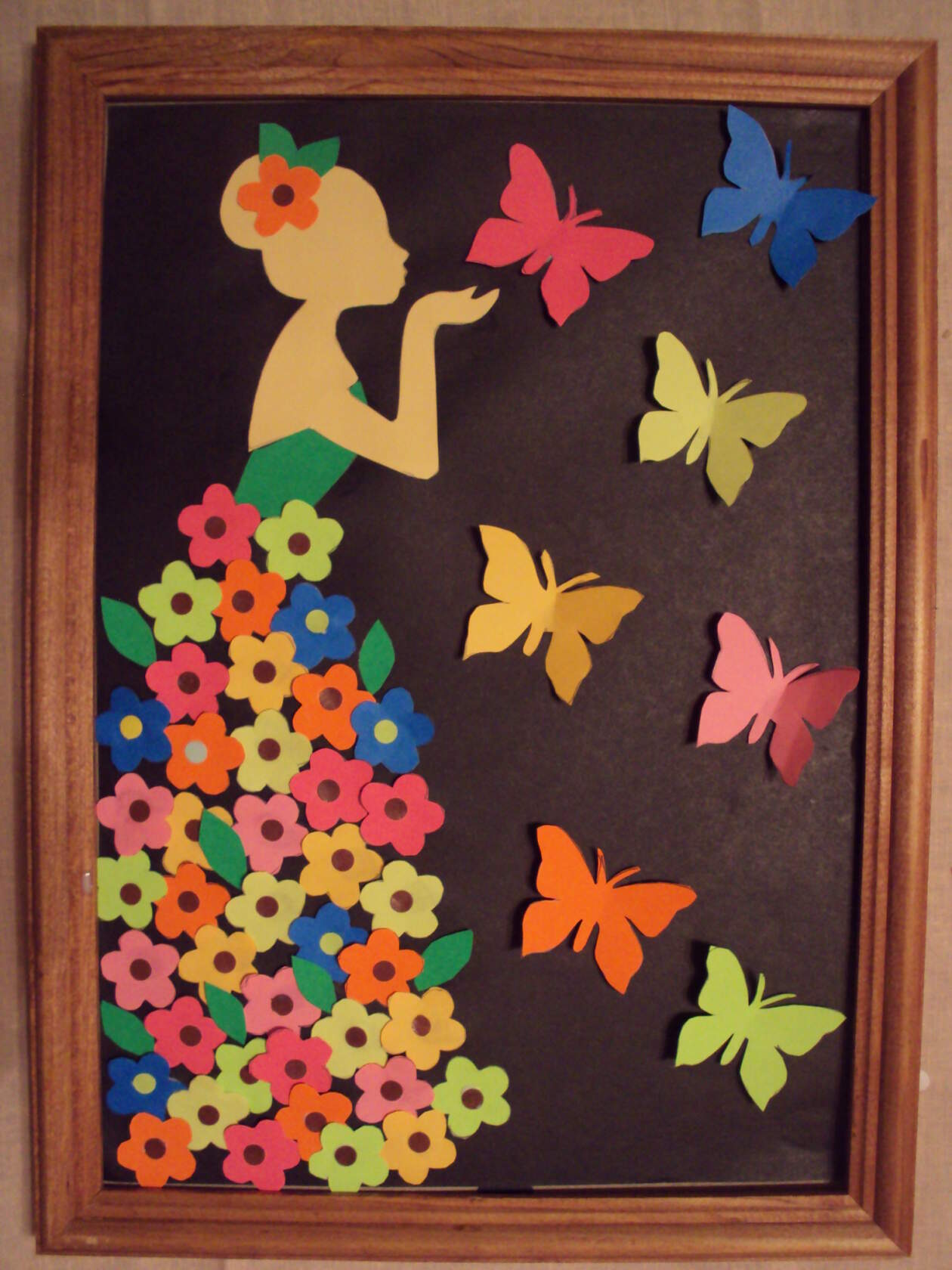 Силуэты бабочек согните по серединке спинки, клей наносите только на линию сгиба. Бабочек наклейте произвольно.