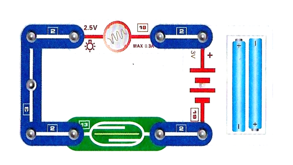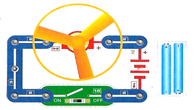 Техника безопасности | Итак, мы можем приступать к сборке цепи. Ребята, когда мы работаем с электронным конструктором, нужно помнить о правилах безопасности. Отметим их в инженерных книгах: - при сборке цепи надавливайте не на середину детали, а по краям в точках крепления, - не дотрагивайтесь и не наклоняйтесь близко к вращающемуся пропеллеру, - убедитесь, что все соединения надежно защелкнуты, - всегда отключайте батареи, если какой-то элемент схемы стал нагреваться. |