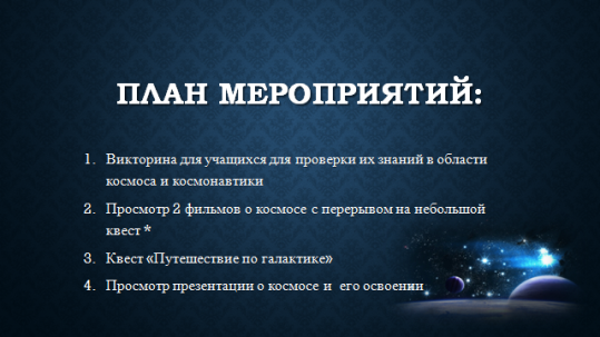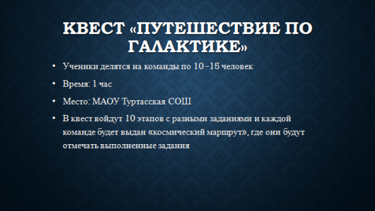 Далее ведущий объявляет о начале квеста «Путешествие по галактике»