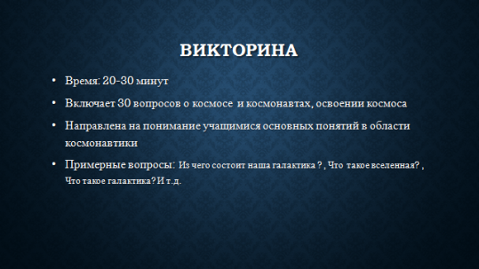 Викторина для учащихся для проверки их знаний в области космоса и космонавтики