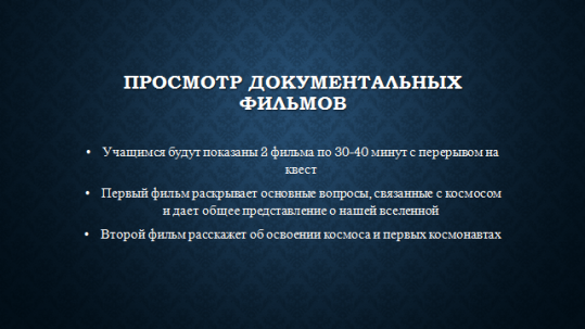Просмотр 2 фильмов о космосе с перерывом на небольшой квест *