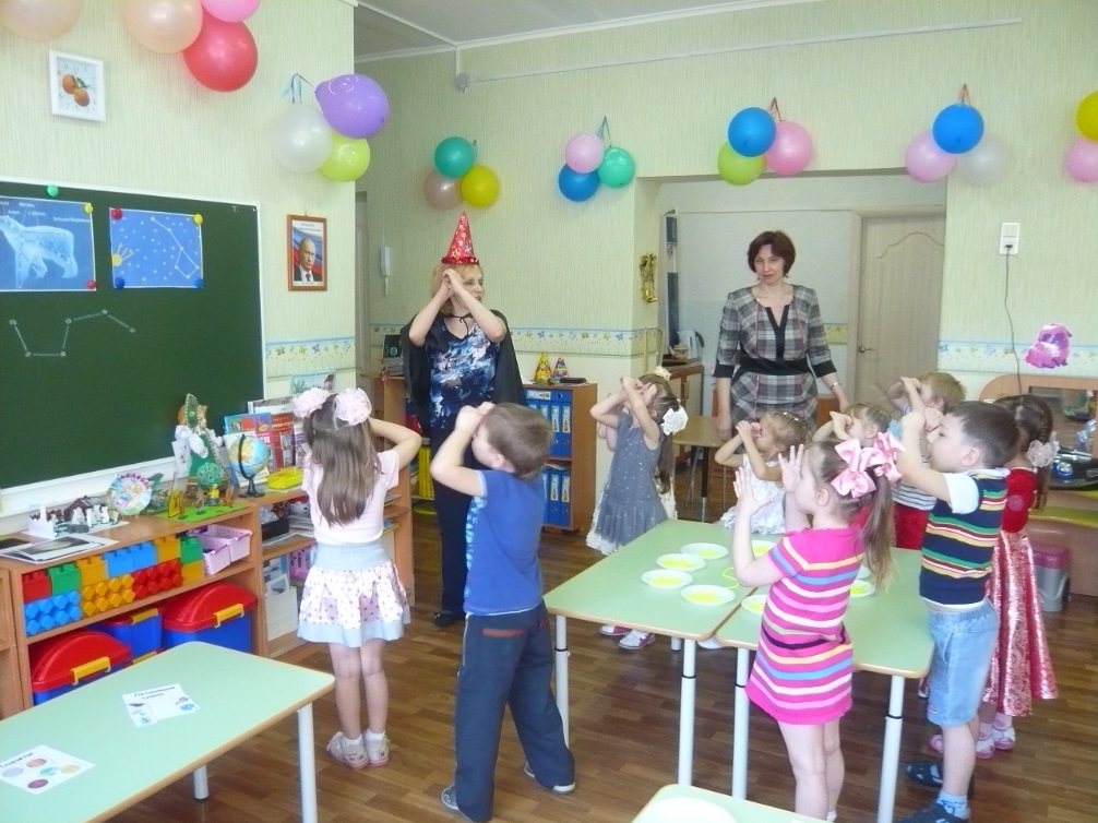 В: Ребята на самом деле в космосе много интересного: разные созвездия, звезды, кометы, астероиды, Вселенные, черные дыры. Об это вы еще будете узнавать. А сейчас поблагодарим астронома и возвратимся в наш детский садик.