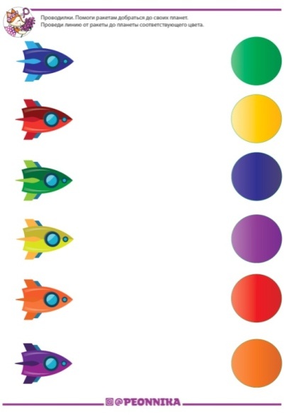 Ведущий: Провести линию от ракеты до планеты соответствующего цвета.