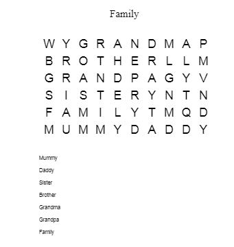 Children: mummy, daddy, grandma, grandpa, brother, baby, sister, family.