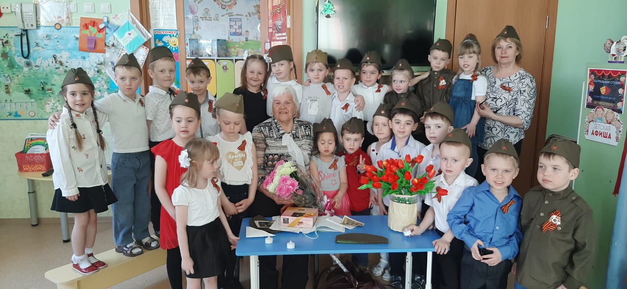 В канун Победы в нашей группе прошла встреча с Валентиной Николаевной Лянгузовой которая в годы войны была такого же возраста, что и теперешняя ребятня. Это прабабушка нашей Алиночки Красиловой