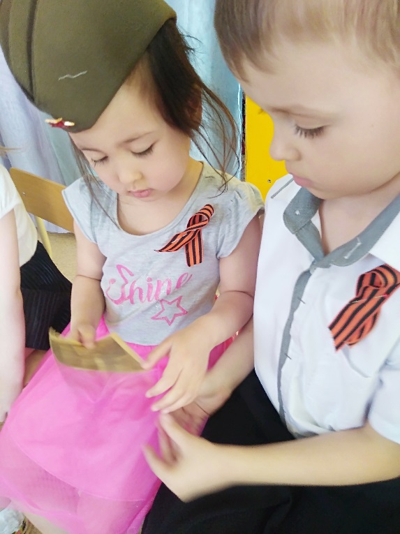 В теплой, дружеской атмосфере прошла встреча. Гостья делилась с ребятами своими детскими воспоминаниями, рассказывала о своих трудовых буднях в тылу, как помогала маме, которая трудилась и за папу, которого забрали на фронт, чтобы прокормить детей и помочь фронту. Как собирали посылки солдатам на фронт, как сама помогала маме следила за курицами, чтобы не залезли в чужой огород. Наравне со взрослыми, хоть и было ей в то грозное время 5 лет делала все для приближения победы. Наши дети задавали гостье много вопросов, желая больше узнать о войне, о судьбе детей военного времени. Диалог получился открытым теплым и сердечным. Вместе спели знаменитую Катюшу .Почтили погибших солдат минутой молчания и зажгли в их память свечи.