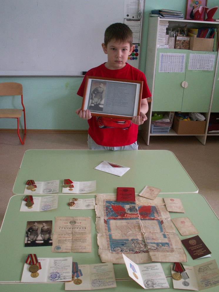 Сережа и Виолетта рассказывают о своих прадедушках и показывают их награды