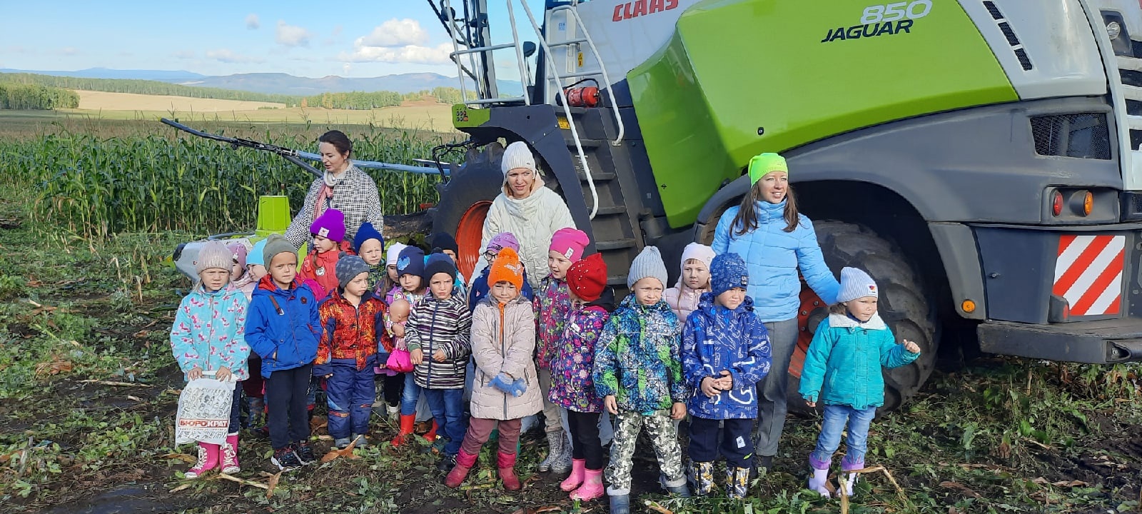 Впоследние дни сентября солнышко ещё радует своим теплом, но работники СХПК «Черновское» на полях торопятся убрать урожай, который вырастили, потому что знают, что осень не очень балует погожими днями. Вот в один такой ясный и тёплый денёк, 13 сентября 2022 года, наши воспитанники из старшей и подготовительной группы побывали на одном из полей СХПК «Черновской». Экскурсию для ребят провела Прокопьева Юлия Александровна. На поле, к радости детей, нас встречали трактористы и комбайнеры. Детям рассказали об устройстве современной уборочной техники, об их работе. Ребята рассмотрели «корабль полей» вблизи, побывали в кабинке комбайнёра. Ребята поблагодарили Юлию Александровну, за интересную беседу и за нелёгкий труд. В завершении нашей экскурсии были сделаны фотографии на память. Возвращаясь в детский сад, дети беседовали с воспитателями об увиденном, делились своими ощущениями, что запомнилось больше всего. Всех воспитанников по приезду в детский сад ждали неожиданные подарки, которые для участников экскурсии, предоставил директор СХПК «Черновской» – Александров Владимир Николаевич.