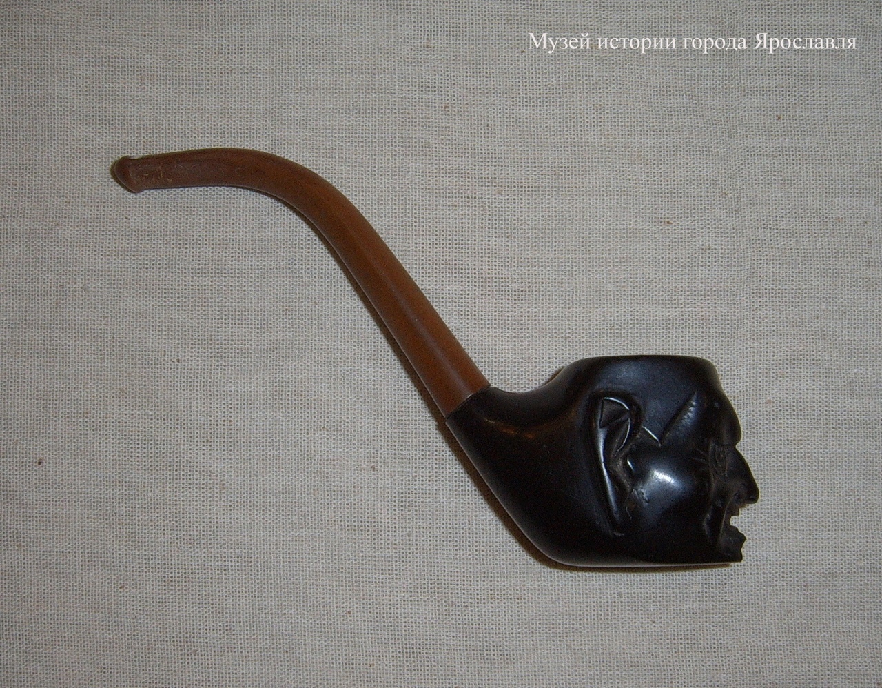 На снимке изображена курительная трубка хирурга Е.Ф. Кройчика. Она сделана из кости и бриара (материал из плотного древовидного нароста (корнекапа) между корнем и стволом кустарника). Конец трубки – в виде старого мужского лица с неприятной гримасой. Наверное, Кройчик много времени проводил за курением и размышлением о работе: о спасённых жизнях и тех, кому он не смог помочь; о семье, оставшейся так далеко в неведении. А в пожилом возрасте Ефрем Александрович за этой трубкой наверняка думал о прошлом, переживая важные моменты вновь.