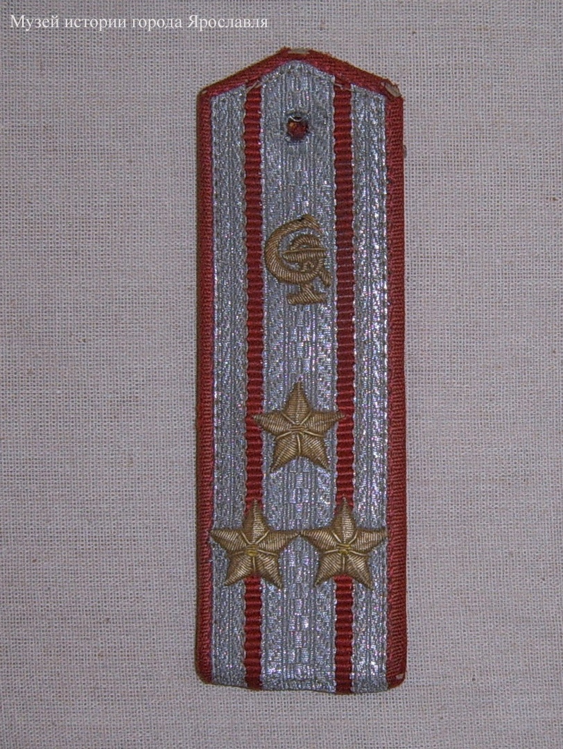 На фотографии изображён погон полковника медицинской службы, который принадлежал Е.А. Кройчику. Это высшее звание для военнослужащего, имеющего военно-учётную специальность медицинского профиля. На погоне вышиты символ медицины (змея, обвивающая чашу) и три звезды полковника.
