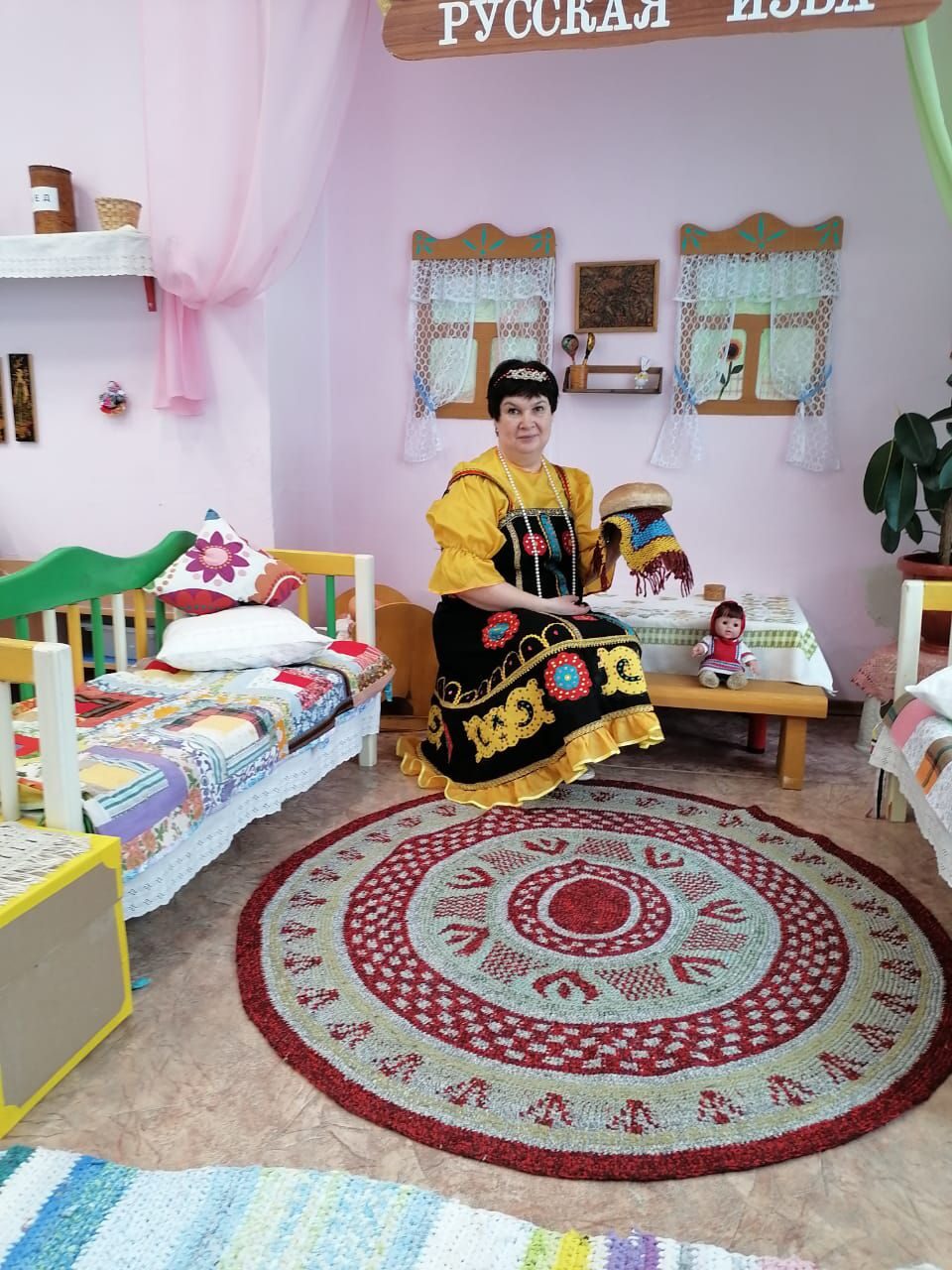 Русская изба с её внутренним содержанием (посуда, мебель, игрушки, музыкальные инструменты, русский костюм и др.)