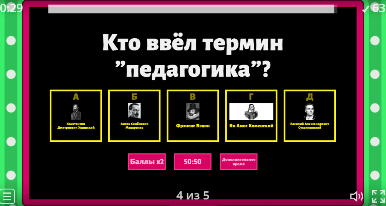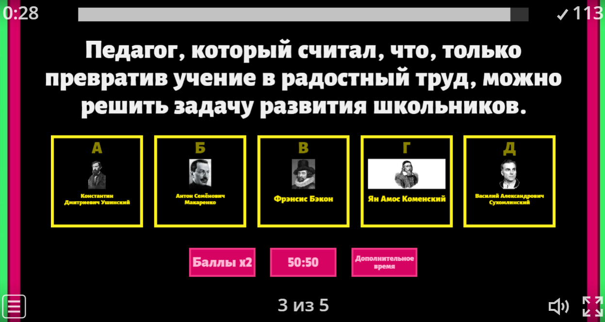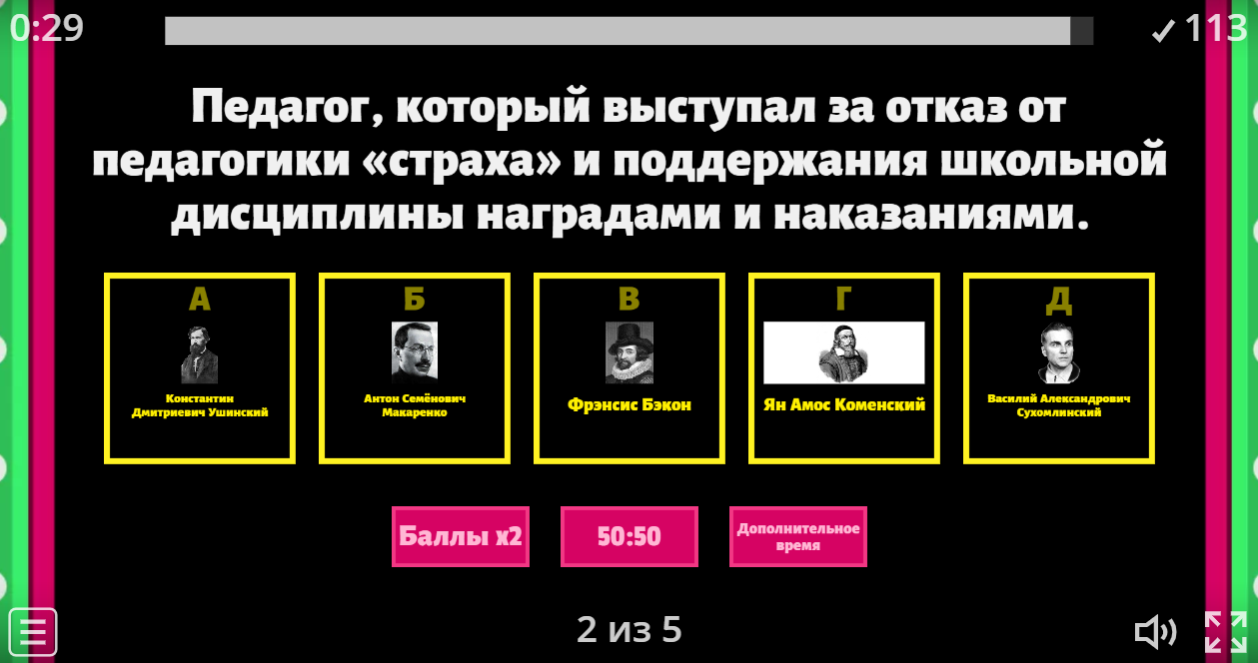 Спасибо вам за ваши ответы. Действительно, мы сегодня будем говорить о людях, которые внесли непосредственный вклад в педагогику.