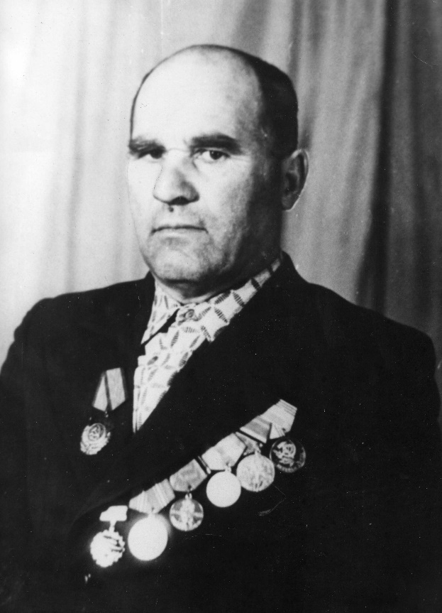 В 1940 году окончил курсы трактористов, 2 сезона поработал и в 1942 году меня забрали на фронт. В 1943 году был тяжело ранен и отправлен в госпиталь г. Новосибирска. Пролежал 9 месяцев, май м-ц 1944 г. был по инвалидности отправлен домой. Но отдыхать не пришлось так как в колхозе мужчин не было, меня с района приехали и попросили на работу в качестве заведующего фермы…Колхоз назывался «Крестьянин» потом «Шверника» и «Россия»… За свой труд я был два рраза в Москве на с/хоз выставке… награжден Орденом «Трудового Красного Знамени»….»