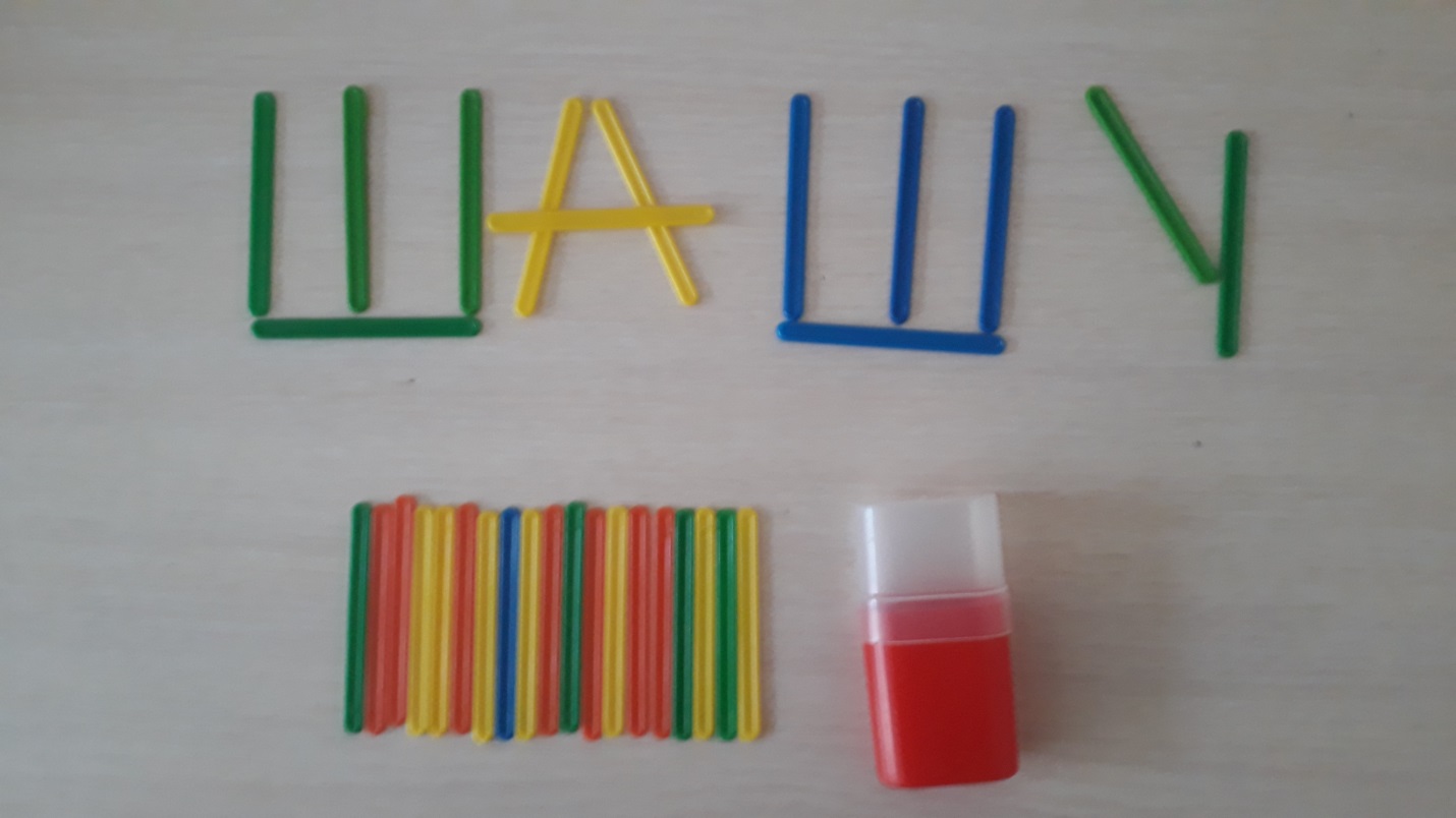 Для развития мелкой моторики, запоминания букв, с детьми проводят упражнение – выкладывание букв с помощью счетных палочек. Дети выкладывают буквы из палочек по образцу или без образца. В ходе проведения упражнения напоминаем детям, что буквы мы пишем и видим, а звук говорим и слышим. Можно предложить ребенку, чтобы он сравнил букву с каким – либо предметом, на что она похожа. Буквы можно вылепить из пластилина либо прописать на рассыпанной в подносе манной муке.