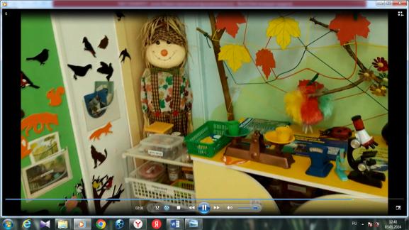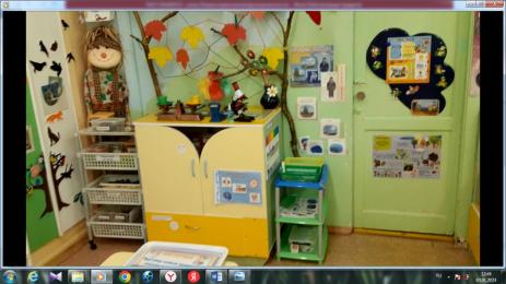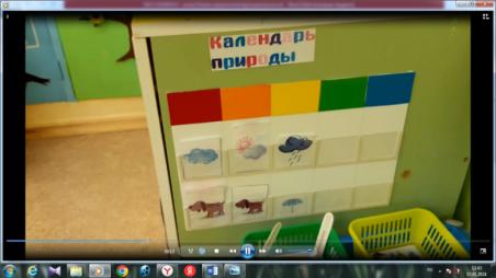 Календарь природы ведется ежедневно, все события дети отмечают самостоятельно: погода, осадки что наблюдали на участке во время прогулки. Здесь проводим занятия по лексическим темам по ознакомлению детей с природой и животным миром, новыми объектами природы, прослушиваем звуки природы, используя средства ИКТ.
