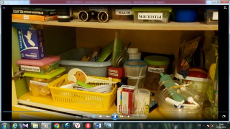 Мини-лаборатория расположилась в шкафу на полочках. Здесь есть все необходимое для проведения опытов, и в целях безопасности и удобства хранится в контейнерах.
