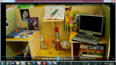 В подготовительной группе дети начинают интересоваться космическими объектами и явлениями. Мы подобрали детскую научную литературу, энциклопедии и видеоматериал для знакомства с космосом, и другими интересными явлениями. Итогом знаний о космосе стали рисунки и поделки воспитанников, космические мобили.