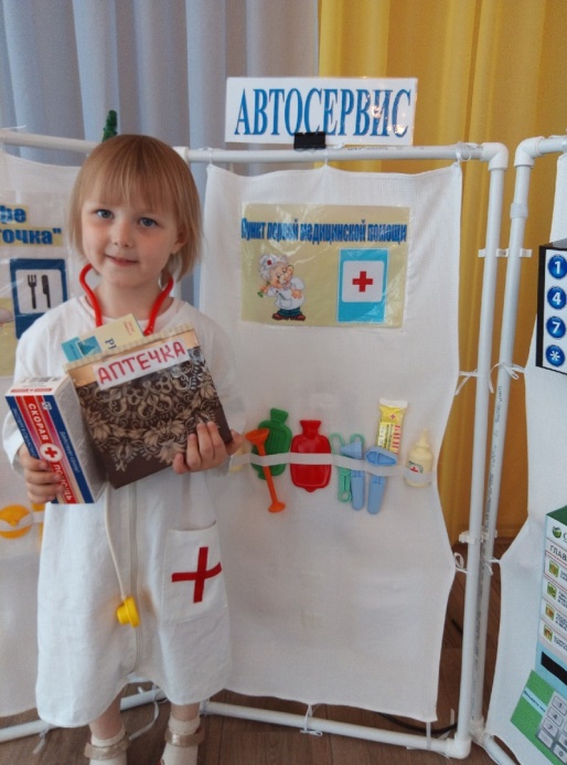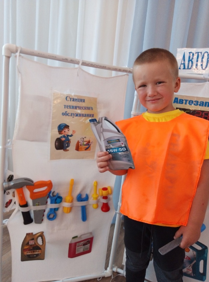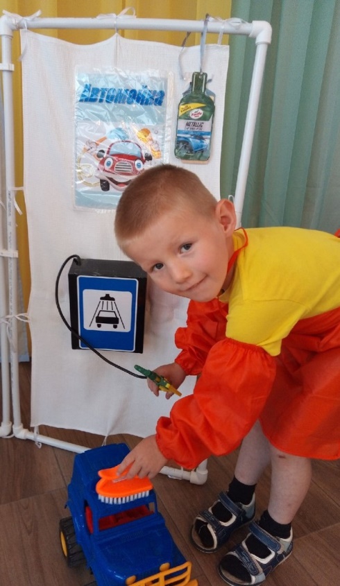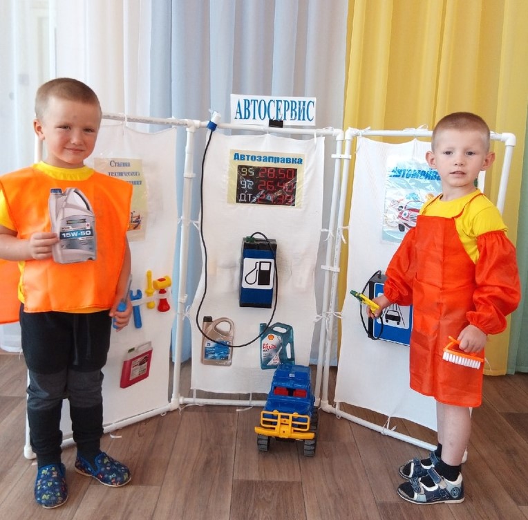 Дети вместе с воспитателем в игровой форме знакомятся с профессиями, востребованными в современном обществе, после чего ребёнок самостоятельно делает выбор своей роли в сюжетно – ролевой игре. Чтобы ребенок ощутил себя частью взрослого мира, вжился в любую профессию, которые в реальной жизни ему еще не скоро будут доступны, с помощью родителей мы решили сшить многофункциональнуюширму "Автосервис».