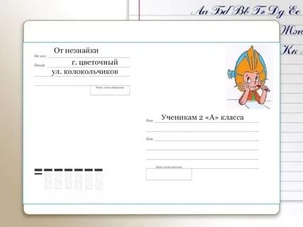 Нам пишет Незнайка из Цветочной городе. Значит это письмо для нас, давайте его откроем, чтобы прочитать, что нам написал Незнайка.