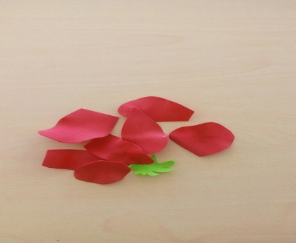 Заготовка лепистков (вырезать детали лепистков розы, листьев произвольной формы. При помощи горячего утюга сформировать листья и листочки розы ) |