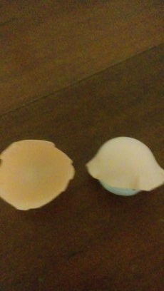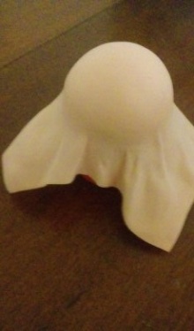 Изготовление головы куклы (натянуть фоамиран на пенопластовый шарик, обрезать излишки, соединить половинки между собой при помощи прозрачного клея на пенопластовым шарике) |